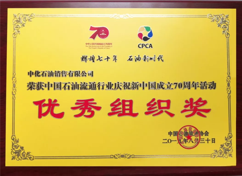 8月30日,“辉煌70年,石油新时代”——中国石油流通行业庆祝新中国成立70周年大会在京召开。石油销售公司荣获中国石油流通行业庆祝新中国成立70周年系列活动优秀组织奖、突出贡献奖。