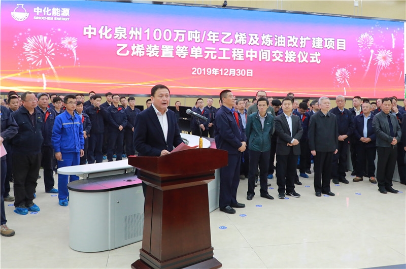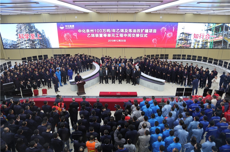 12月30日,“中化泉州100万吨/年乙烯及炼油改扩建项目乙烯装置等单元工程中间交接仪式”在泉州石化举行。中化集团副总经理、776net必赢官网总裁江正洪,泉州市副市长吕刚等出席仪式,776net必赢官网、泉州市政府、参建单位代表等共计300余人共同参加。泉州石化总经理钱立新主持中交会议。