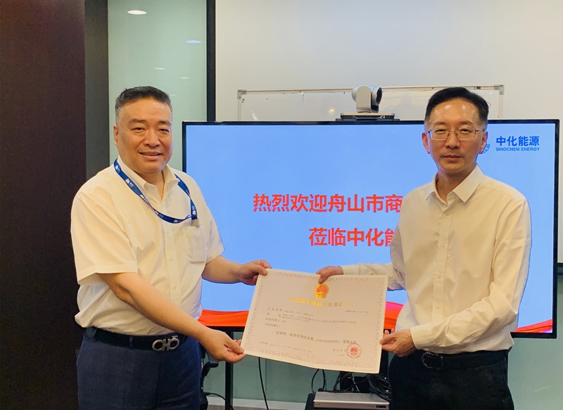 7月6日,根据《中国(浙江)自由贸易试验区国际航行船舶保税油经营管理暂行办法》,经舟山市政府批复同意,舟山市商务局在北京为中化石油(舟山)有限公司(简称中化石油舟山)颁发“国际航行船舶保税油经营”牌照,标志着中化石油公司作为浙江自贸区保税船用燃料油市场的新力量,正式成为国内拥有保税船供油资质的成品油零售供应商。中化石油公司副总经理、中化石油舟山总经理高宾与舟山市商务局局长张捷一行围绕能源贸易领域政企合作主题,进行了深入的交流和探讨。