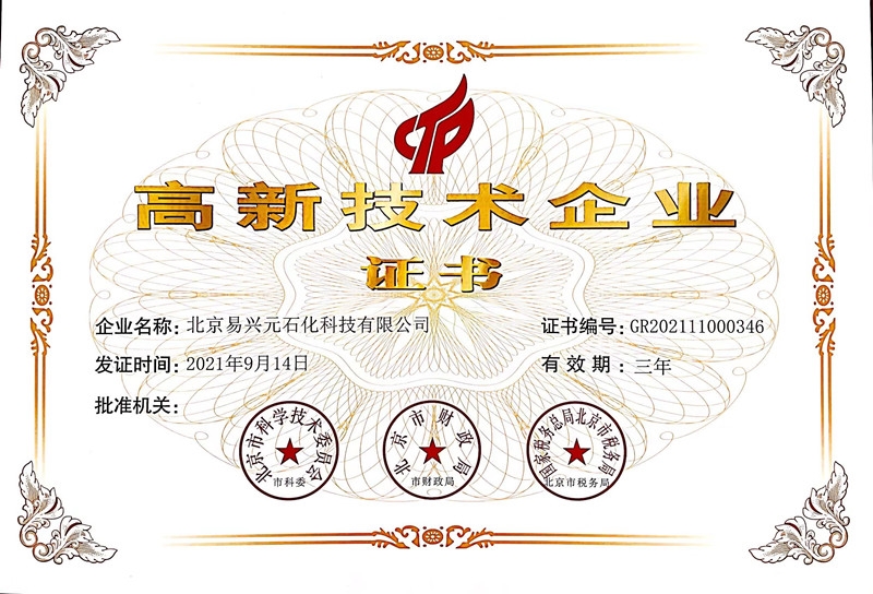 近日,776net必赢官网所属企业北京易兴元石化科技有限公司(简称易兴元)凭借过硬的研发实力和创新实力,通过高新技术企业认定,正式迈入国家高新技术企业行列。
