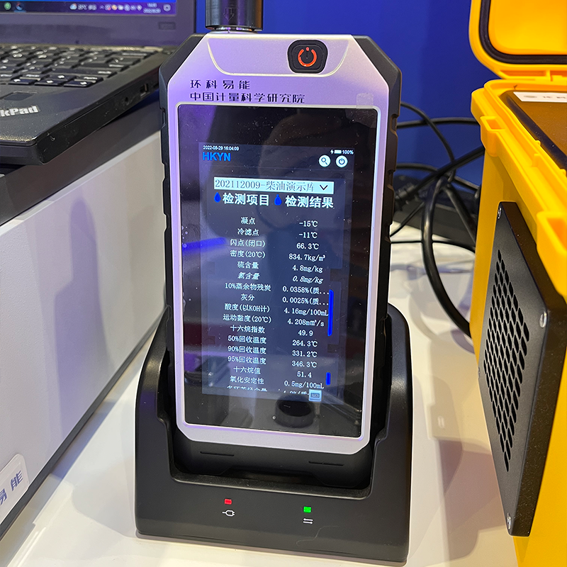 陈晓翔为媒体展示了展台几款产品的使用方法,他介绍到,基于快检设备的科技创新与检测实力,原本检测汽柴油全项的40余项指标,需要30余台仪器、24小时才能完成,现在只需1台近红外设备、30分钟即可以出具全项检测结果,快速检测指标的准确性、可靠性能够达到常规实验室检测水平。