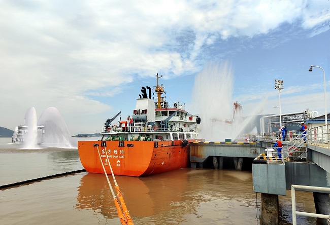 近日,宁波舟山港岙山港区2025年度溢油应急演练在中化兴中石油转运(舟山)有限公司6号泊位区域举行。演练模拟在泊油轮因装载油品过程中因操作不当,换舱不及时,导致燃料油冒出发生溢油,约有1吨油品流入海中。当地海事部门及时出动“海巡07349”“海巡0731”指挥救援,并调动“新海清”“中化应急”“海安清1”等共计12艘船艇和2辆消防车,并布放围油栏800多米,使用消油剂、吸油毡等抢险物品全力投入清污抢险,有效清理了本次“溢油事故”的扩散污染物。