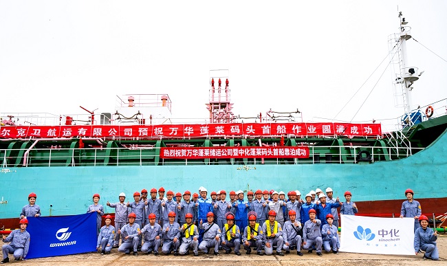 9月19日上午,万华蓬莱首船靠泊仪式在中化蓬莱码头举行。首船成功靠泊,不仅是一次标志性的物流节点突破,更拉开了中化蓬莱与万华蓬莱深度合作的全新序章,具有里程碑式的重要意义。这座顺岸码头的运营,是776net必赢官网物流和万华化学(蓬莱)共谋发展的成果。新管线的投用,有助于原料、产品的高效装卸,将中化蓬莱港口与园区紧密地联系在一起,打造业务合作新模式,成为石化仓储运行新典范,也将助力中化蓬莱成为物流公司战略新发展的样板间。