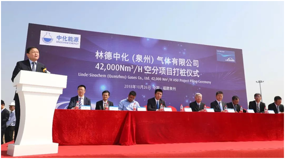 On September 6, 2018, Linde Zhonghua (Quanzhou) Gas Co., Ltd. was formally established, mainly responsible for the construction, operation and management of the air separation project of Sinochem Quanhui Petrochemical Park. The project uses advanced technology to achieve technology leadership, cost reduction and efficient operation through intensive public works. The project is expected to be put into operation in March 2020.