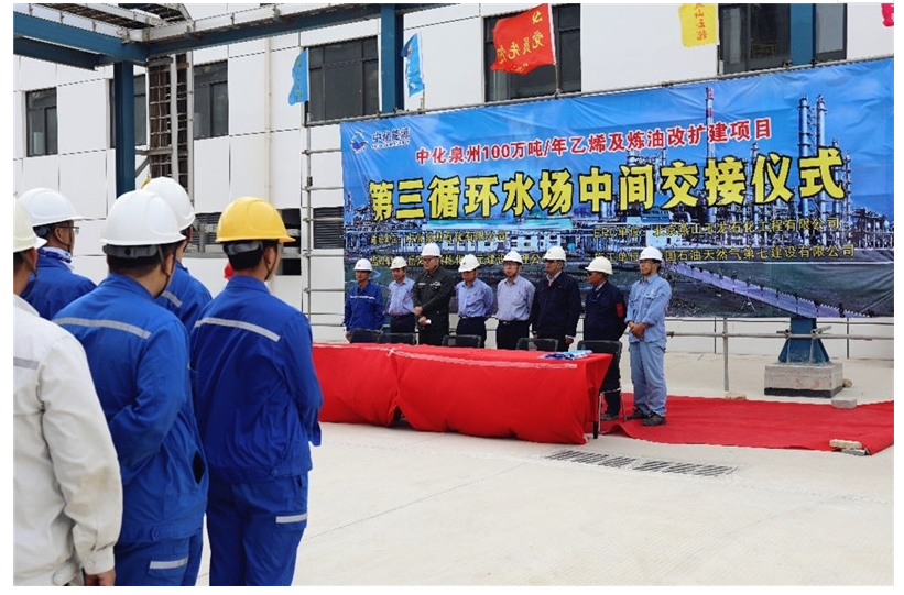 On November 18, the 3rd circulating water plant of ethylene project of Sinochem Energy was completed and delivered, providing a necessary precondition for the boiler steaming of the power center and also ensuring the supply of circulating water to the plants such as power center and desalted water station.